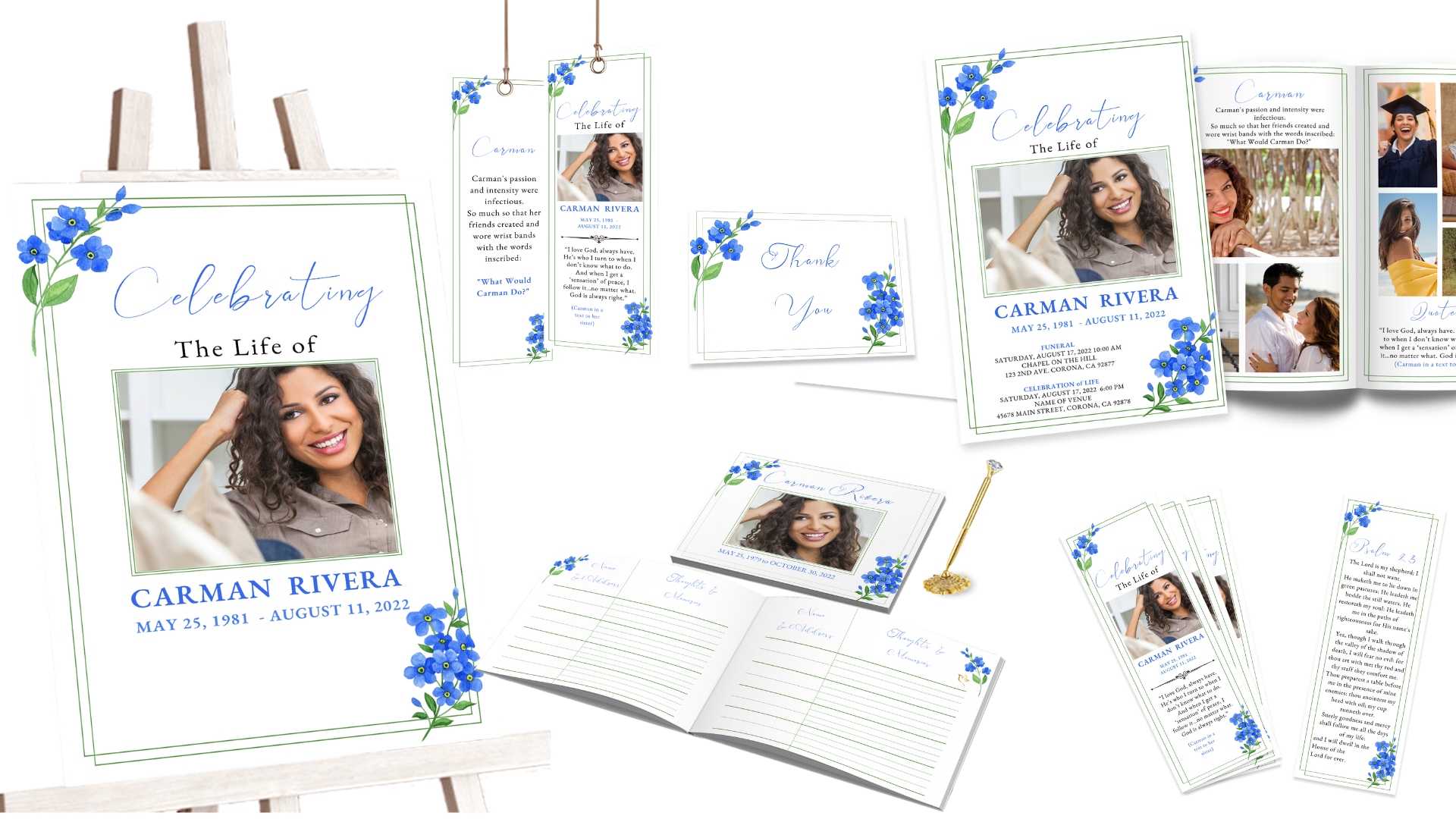 If you’re searching for a meaningful way to honor your loved one, look no further than Forget-Me-Nots. Beautiful forget-me-nots bloom along the corners against a clean white background. The beautiful appearance of these templates needs no adjustment. Simply edit with your loved one's pictures and information, and print the templates for a seamless yet beautiful, blossoming manner that properly pays tribute to their memory.