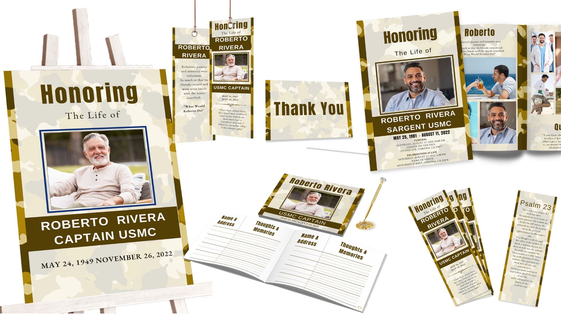 Honor those men or women who served their country in the marines with these Patriotic Honored Veterans funeral memorial program templates. This choice is a heartfelt tribute to veterans and all who have dedicated their time in service or made the ultimate sacrifice for our freedom. These marine veteran funeral program templated will become treasured keepsakes to honor and remember your loved one.