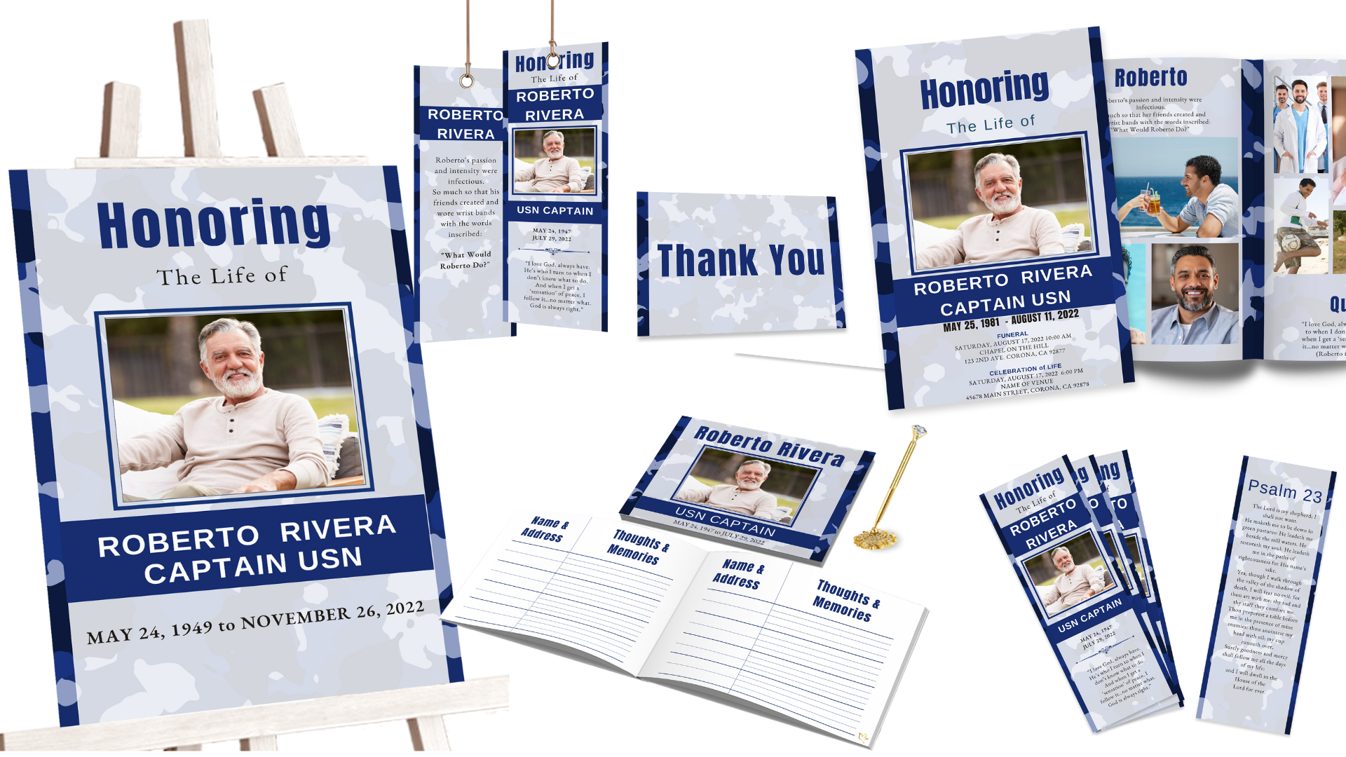 Honor those men or women who served their country in the navy with these Patriotic Honored Veterans funeral memorial program templates. This choice is a heartfelt tribute to veterans and all who have dedicated their time in service or made the ultimate sacrifice for our freedom. These navy veteran funeral program templated will become treasured keepsakes to honor and remember your loved one.