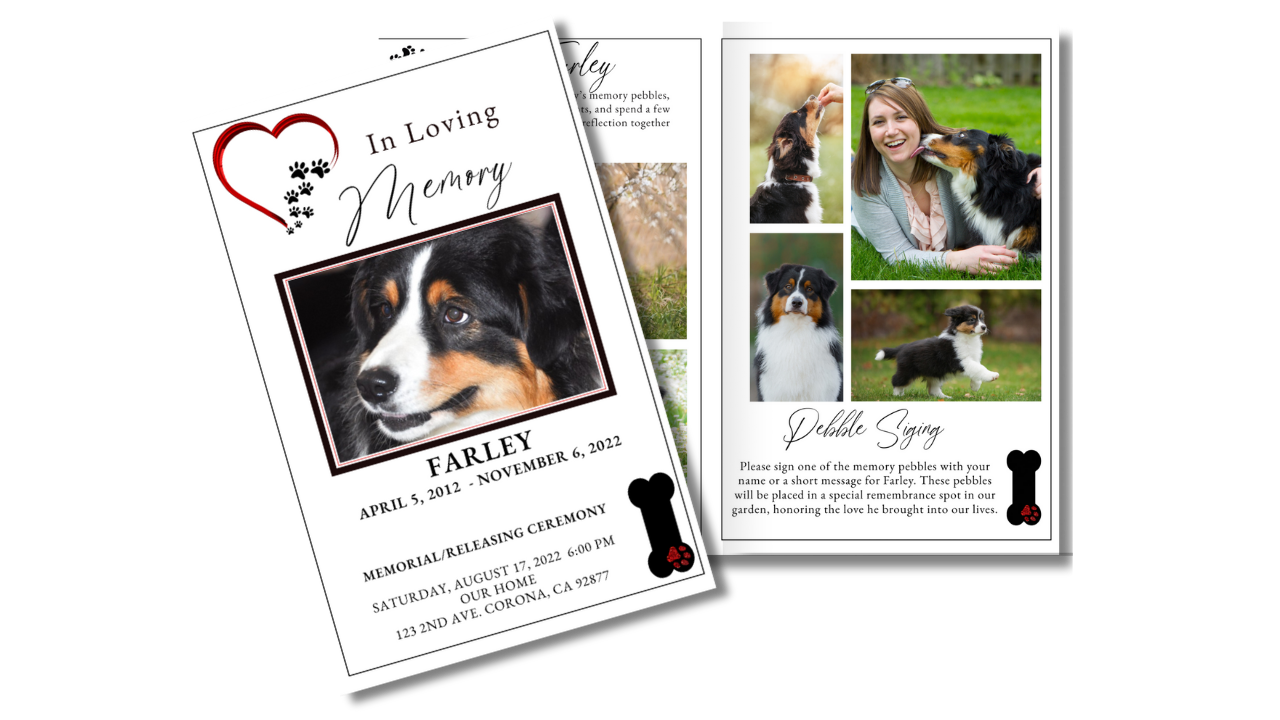 Designed to honor the loyalty, joy, and unconditional love of a cherished dog, the Furry Friends memorial program offers a heartfelt way to share photos, memories, and meaningful moments. The warm layout and gentle details reflect a life filled with companionship and devotion. Fully editable in Canva, this template is easy to personalize and print with love.